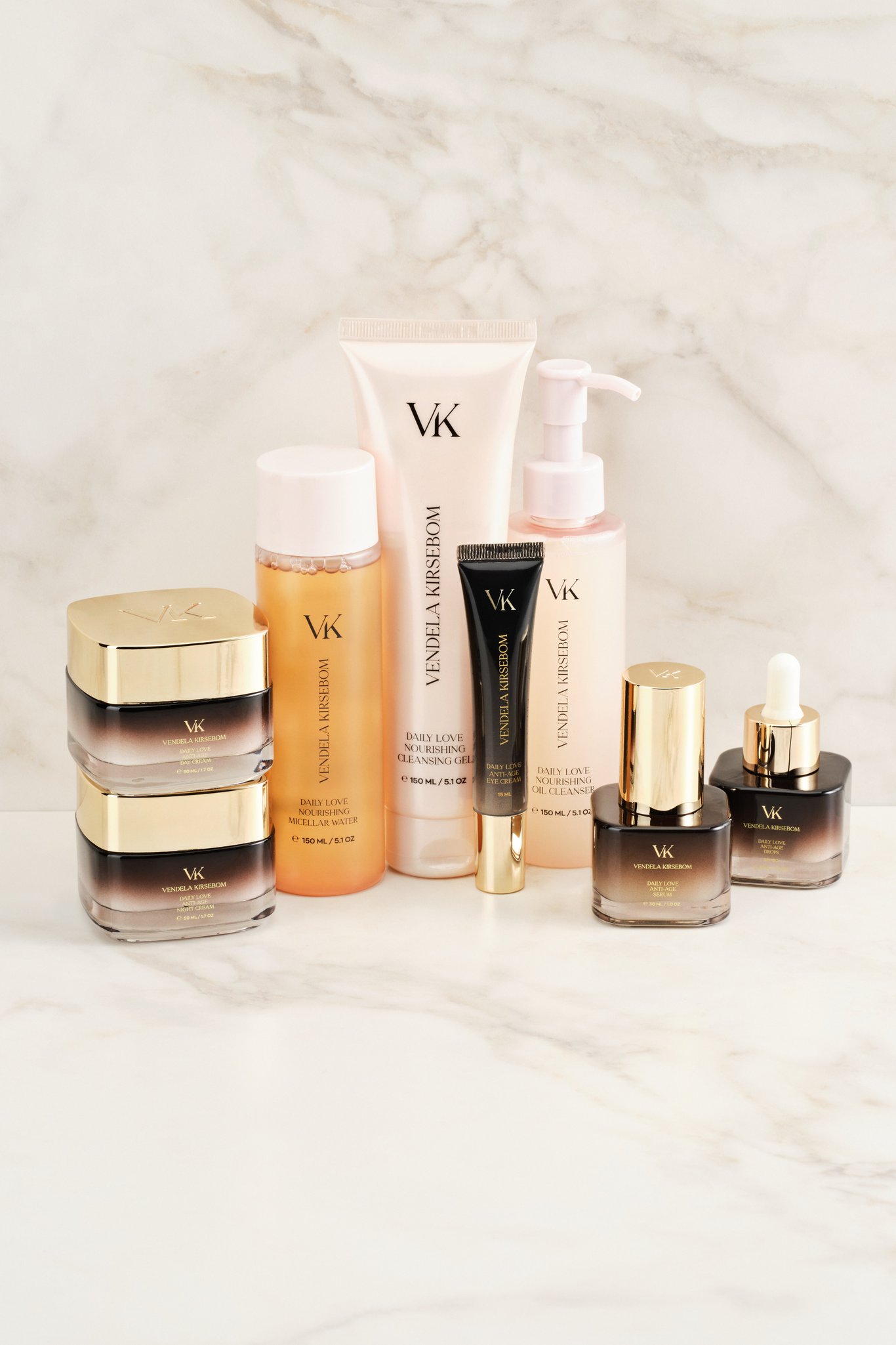 VITA spør videre om hun kan fortelle oss om sin daglige hudpleierutine. Vendela viser først frem renseproduktene. «Det er Daily Love Nourishing Micellar Water som jeg ikke kan leve uten. Den er en redning, spesielt om jeg skal ut på trening om morgenen, da påfører jeg den kjapt før jeg går ut av døren». Hun fortsetter: «Daily Love Nourishing Cleansing Gel er lett å bruke, og kan også brukes i dusjen. Jeg har den bare stående der».