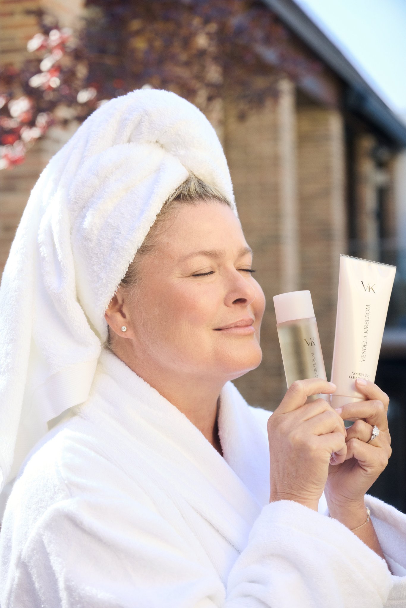 Vendela viser oss rundt i det nydelige hjemmet hennes, og vi kommer til slutt inn til badet – der produktene står på baderomsbenken. Hudpleieserien er utviklet med kjærlighet til kvinnehuden, moderne teknologi og med fokus på beskyttelse, fukt og langsiktig hudhelse. Disse produktene ble lansert i VITA butikkene i januar 2026, og Vendela uttrykker sin begeistring over at andre skal teste: “Jeg gleder meg til du skal få prøve. De er så fantastisk fine, og jeg gleder meg til å høre tilbakemeldinger. Si gjerne hva du mener og føler. Håper du kommer til å elske produktene like mye som meg”.